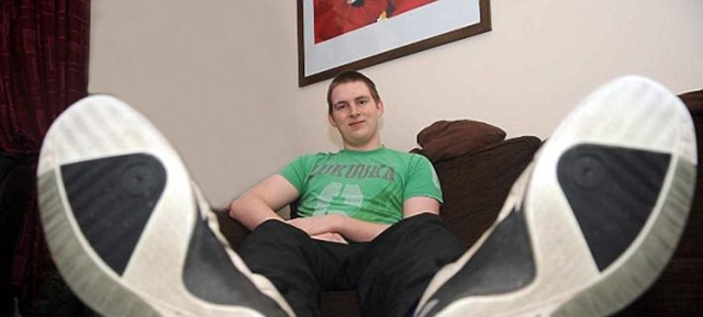 Τα… τεράστια πόδια του Κάρλ Γκρίφιθς χρειάζονται παπούτσια μεγέθους 57, ενώ ακόμα και τα μαγαζιά που ειδικεύονται σε υποδήματα μεγάλου μεγέθους σταματούν συνήθως τέσσερα με πέντε νούμερα παρακάτω.