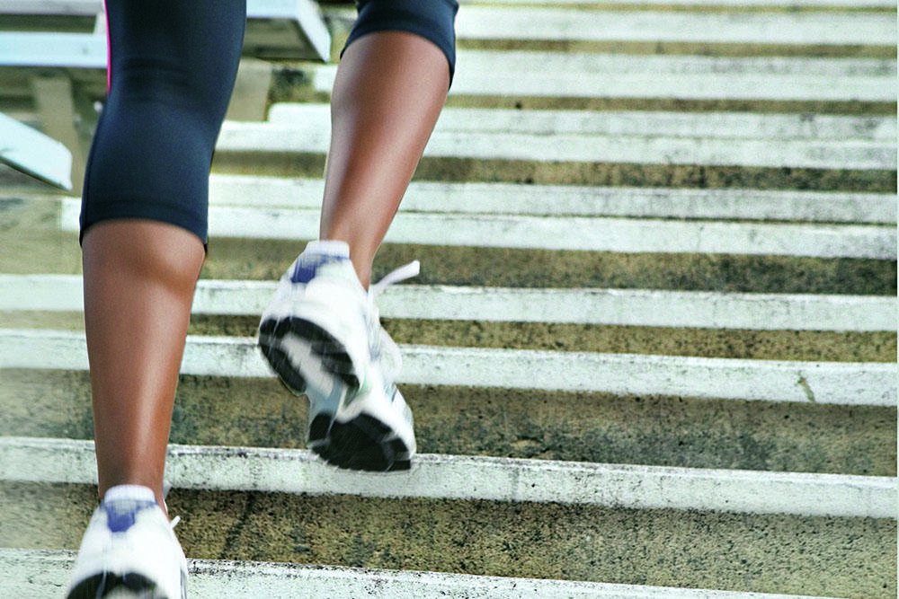 Στάσου σε ένα σκαλί με τα δάχτυλα σου να πατάνε και τις φτέρνες σου να αιωρούνται. Κρατήσου από κάποιο σταθερό σημείο, πίεσε τα δάχτυλα των ποδιών σου στο έδαφος ώστε να ανυψώσεις το σώμα σου (έκκεντρη κίνηση), και μετά αργά αργά (5 δευτερόλεπτα) χαμήλωσε τις φτέρνες σου κάτω από το επίπεδο των ποδιών σου (έκκεντρη ενδυνάμωση). Πίεσε ξανά και επανέλαβε. Εκτέλεσε 3 σετ των 15 επαναλήψεων καθημερινά.